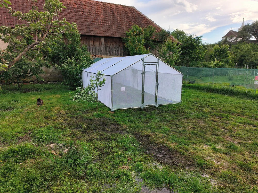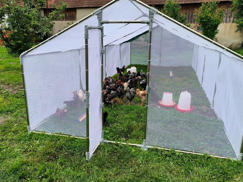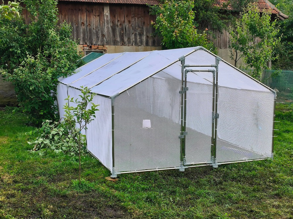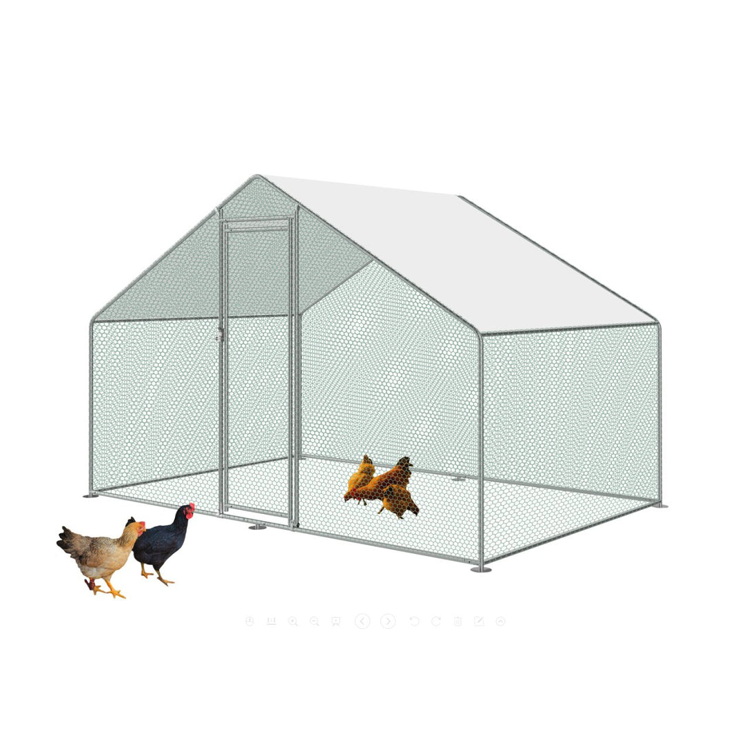 Този кокошарник е изработен от висококачествена поцинкована стомана за по-голяма издръжливост, с покрив от 100% полиетилен, който е водоустойчив и устойчив на UV лъчи, като предлага защита от слънце, дъжд, сняг и други неблагоприятни атмосферни условия. Вратата е оборудвана с ключалка. Сглобява се лесно.