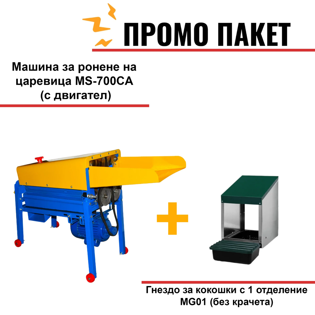 Машина за ронене на царевица MS-700CA (с двигател) + Гнездо за кокошки с 1 отделение MG01 (без крачета)