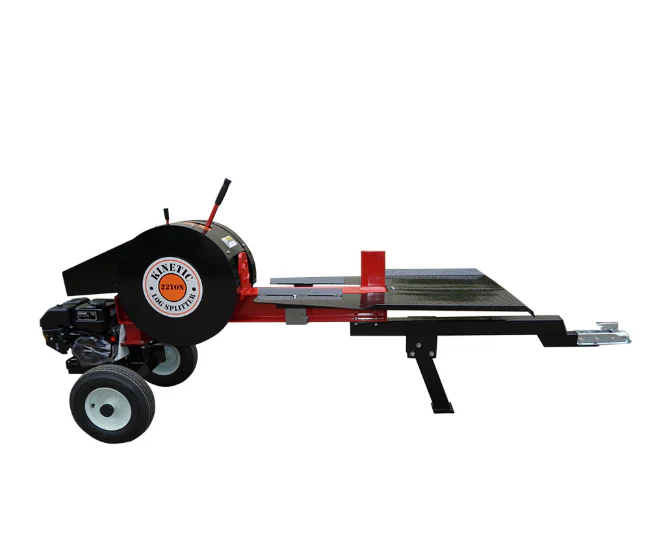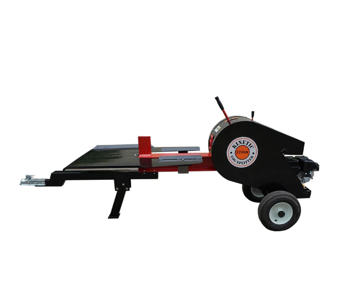 Хоризонтална машина за цепене на дървесина, която благодарение на своя двигател може да упражнява натиск от 22 тона и позволява по-бързо цепене благодарение на скоростта на въртене на маховика от 450 об/мин.