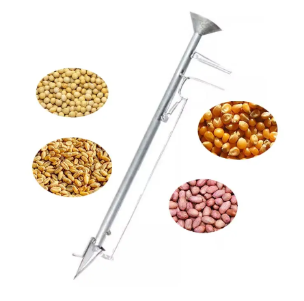 Сеялката идва с метална основа в предната част, която е подвижна и е специално проектирана за натискане с крак, за да помогне за проникването на уреда в почвата там, където е по-твърдо.