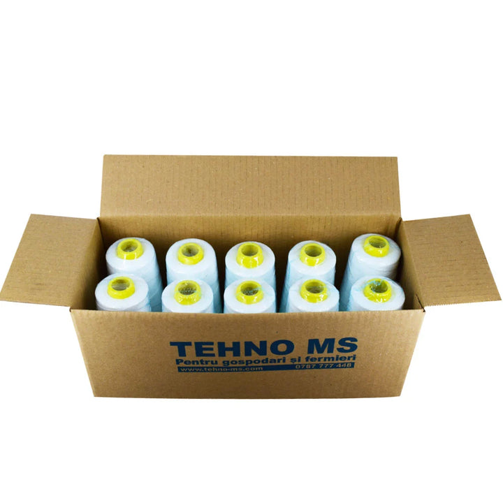 Белият конец за шевни машини е изработен от 100% полиестер, което му придава по-голяма устойчивост/здравината.