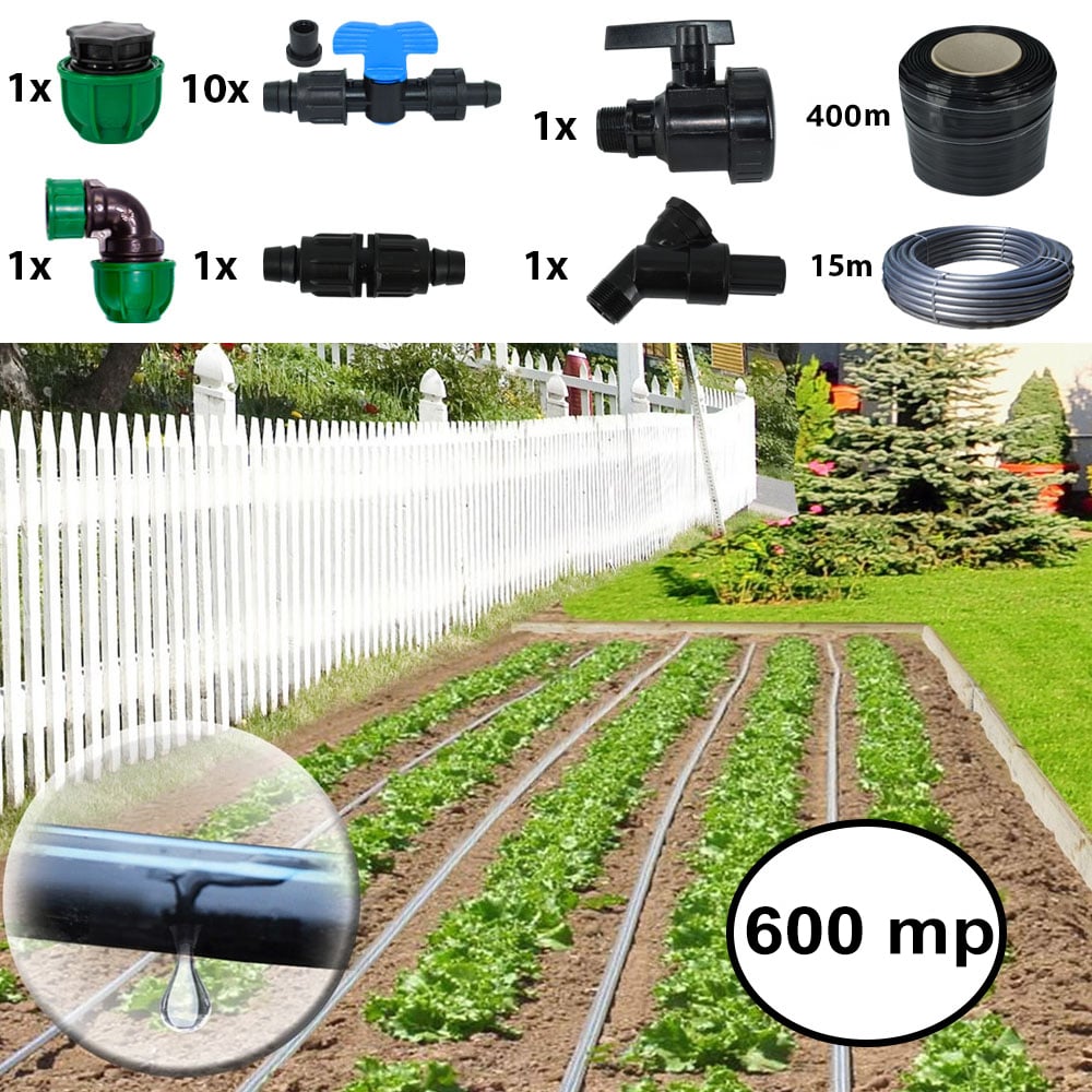 Система за капково напояване 600 кв.м Системата за капково напояване е много практичен продукт, тъй като водата ще достигне до корените на растенията, осигурявайки им необходимата вода с много бавна скорост. Системата за капково напояване е с нисък разход на вода и по този начин не благоприятства развитието и поникването на плевели. Капковото напояване се извършва с помощта на капкова...