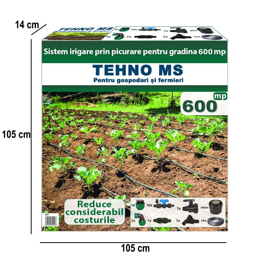 Повърхността, която се напоява с тази система е 600 квадратни метра.