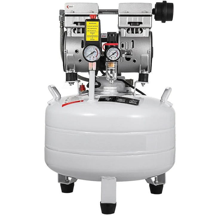 Вместимост 30 л: въздушният компресор е оборудван с безмаслена помпа за минимална поддръжка и 30-литров резервоар за непрекъсната, високоефективна работа.
