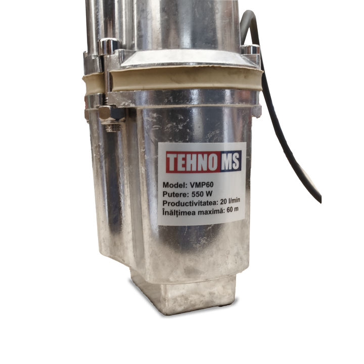 Вибрационна градинска водна помпа VMP60, 550 W Вибрационната потопяема водна помпа е оборудване, използвано за транспортиране на вода от кладенци, езера, басейни, фонтани  идр. за да се снабдяват различни потребители. По отношение на конструкцията помпата има три основни компонента: двигател, помпен агрегат и корпус.Основната характеристика на потопяемата вибрационна помпа е максималният напор, тъй като те работят само когато са потопени...