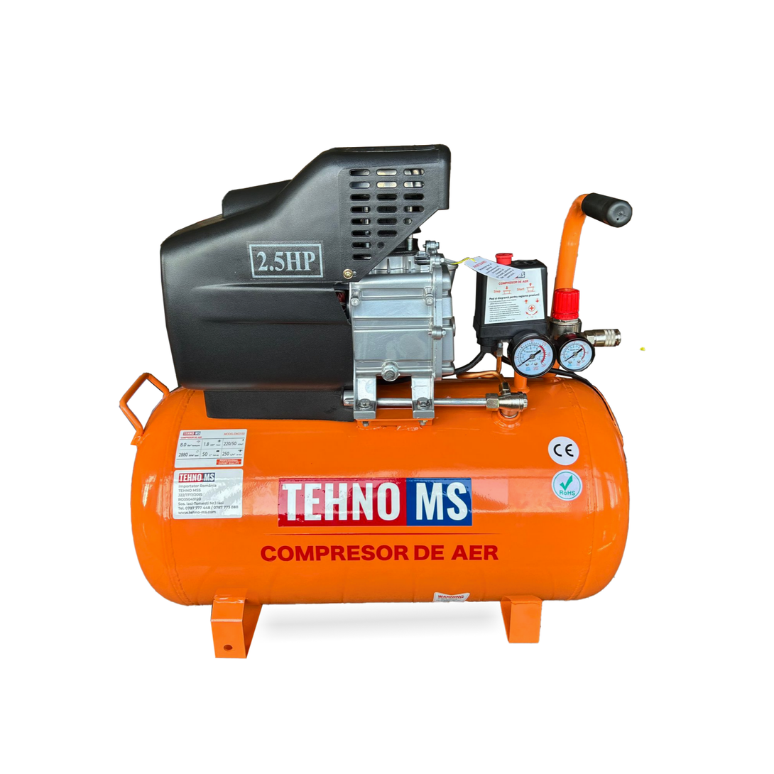 Въздушен компресор модел DM2550 Високопроизводителен компресор с директно задвижване, предназначен за различни приложения на сгъстения въздух: домашна употреба, работилници, почистване, периодично боядисване С FL регулатор, напълно затворен капак на двигателя, пластмасови манометри, бърза връзка в европейски стил, алуминий Характеристики: Входящият филтър е лесно достъпен за по-лесна и бърза работа по поддръжката Модел с колела и дръжки за лесно пренасяне...
