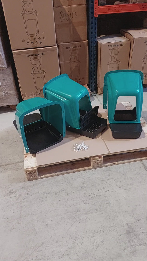 Гнездото за кокошки е изработено от висококачествена пластмаса, монтира се на стената, лесно се почиства и дезинфекцира.