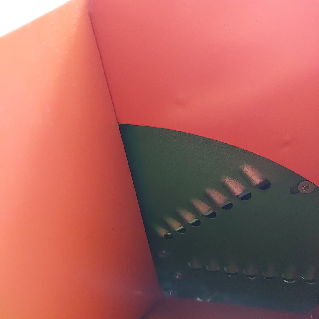 Рамката е изработена от боядисана стомана, а ножовете - от неръждаема стомана.