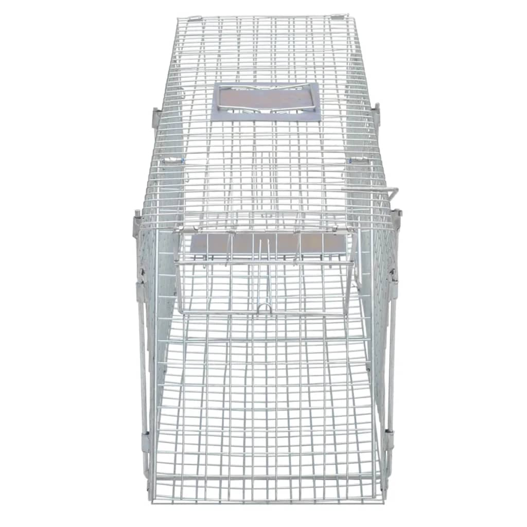 Клетките с капани са безопасно и хуманно устройство за улавяне, пренасяне и освобождаване на нежелани животни, за да ги държите далеч от имотите и земите си.Тази клетка с капан и предна врата е лесна и безопасна за използване около деца и домашни любимци.