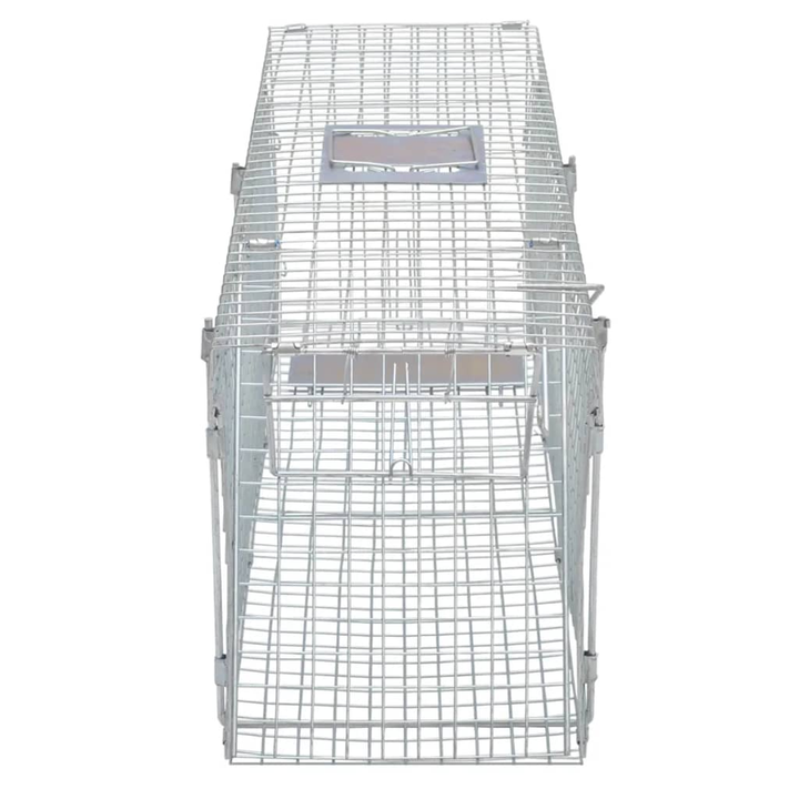 Клетките с капани са безопасно и хуманно устройство за улавяне, пренасяне и освобождаване на нежелани животни, за да ги държите далеч от имотите и земите си.Тази клетка с капан и предна врата е лесна и безопасна за използване около деца и домашни любимци.