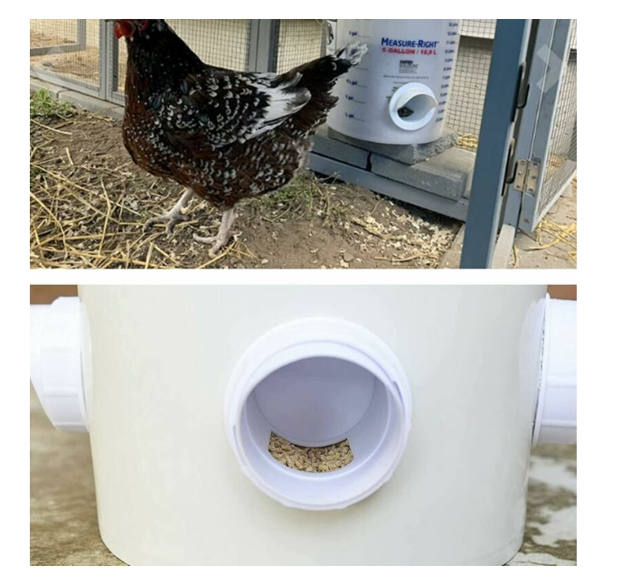 Ергономичният дизайн на тази хранилка гарантира, че фуражът ви ще остане сух (ако кофата е покрита с капак) и няма да се разпилее.