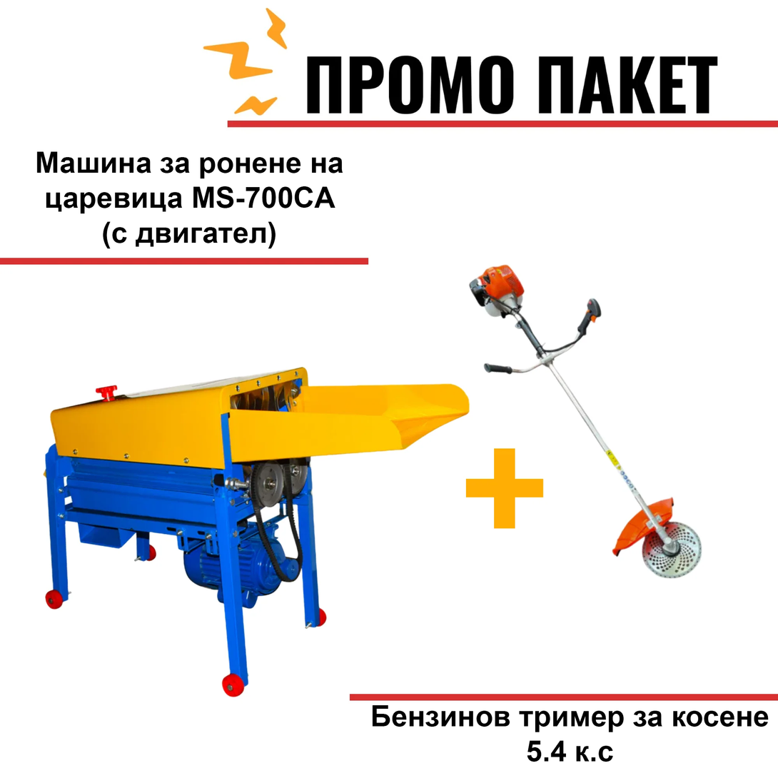 Машина за ронене на царевица MS-700CA (с двигател) + Бензинов тример за косене, 5.4 к.с., 10000 об/мин, 51.2 куб. см+ включени аксесоари