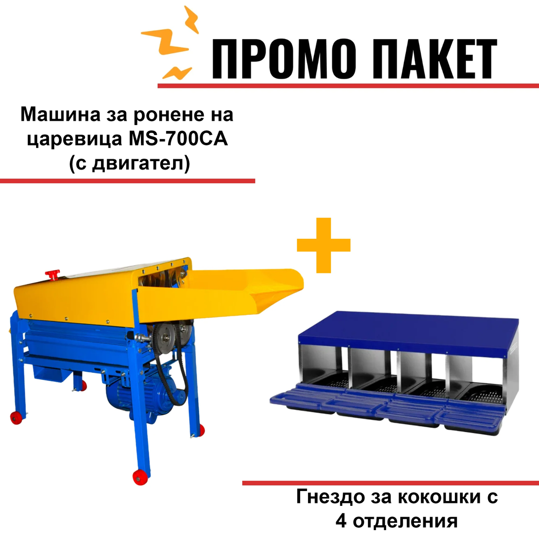 Машина за ронене на царевица MS-700CA (с двигател) + Гнездо за кокошки с 4 отделения