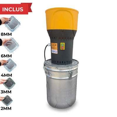 Производственият капацитет на тази мелница е 200 кг/ч и е оборудвана с 5 сита: 2 мм, 3 мм, 4 мм, 6 мм и 8 мм.