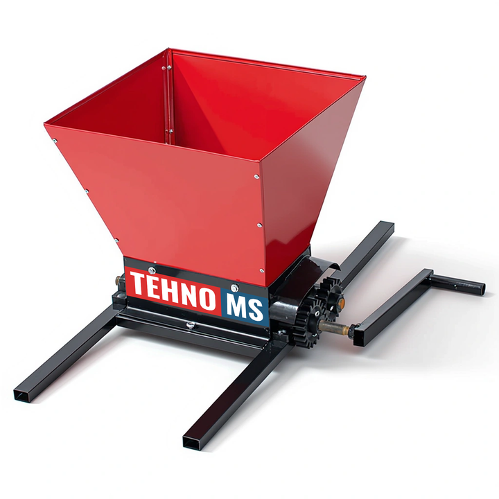 Гроздомелачка, производителност 180 кг/ч, 20-литров резервоар HGP-50 е ръчна машина за смачкване на грозде, предназначена за любители на традиционното винопроизводство, идеална за получаване на прясно гроздово мъст директно от собствената ви лозарска градина. Изработена от издръжлив композитен материал, подходящ за употреба с храни, тя гарантира безопасност на храните и устойчивост при дългосрочна употреба. Начин на употреба: Поставете гроздомелачката върху бъчвата,...