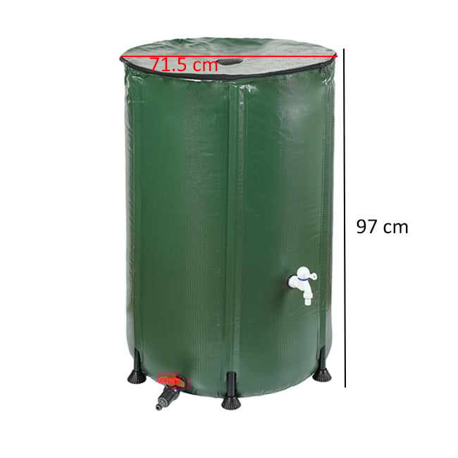 Сгъваемият варел за дъждовна вода се използва за задържане и съхранение на дъждовна вода, която по-късно може да се използва за поливане на градини, миене на превозни средства, почистване на примеси и др. Може да се използва при температура от - 35 ° C до + 80 ° C, защото е изработен от синтетични PVC материали, които осигуряват вашата издръжливост и изискват от потребителя разходи при използване и поддръжка.