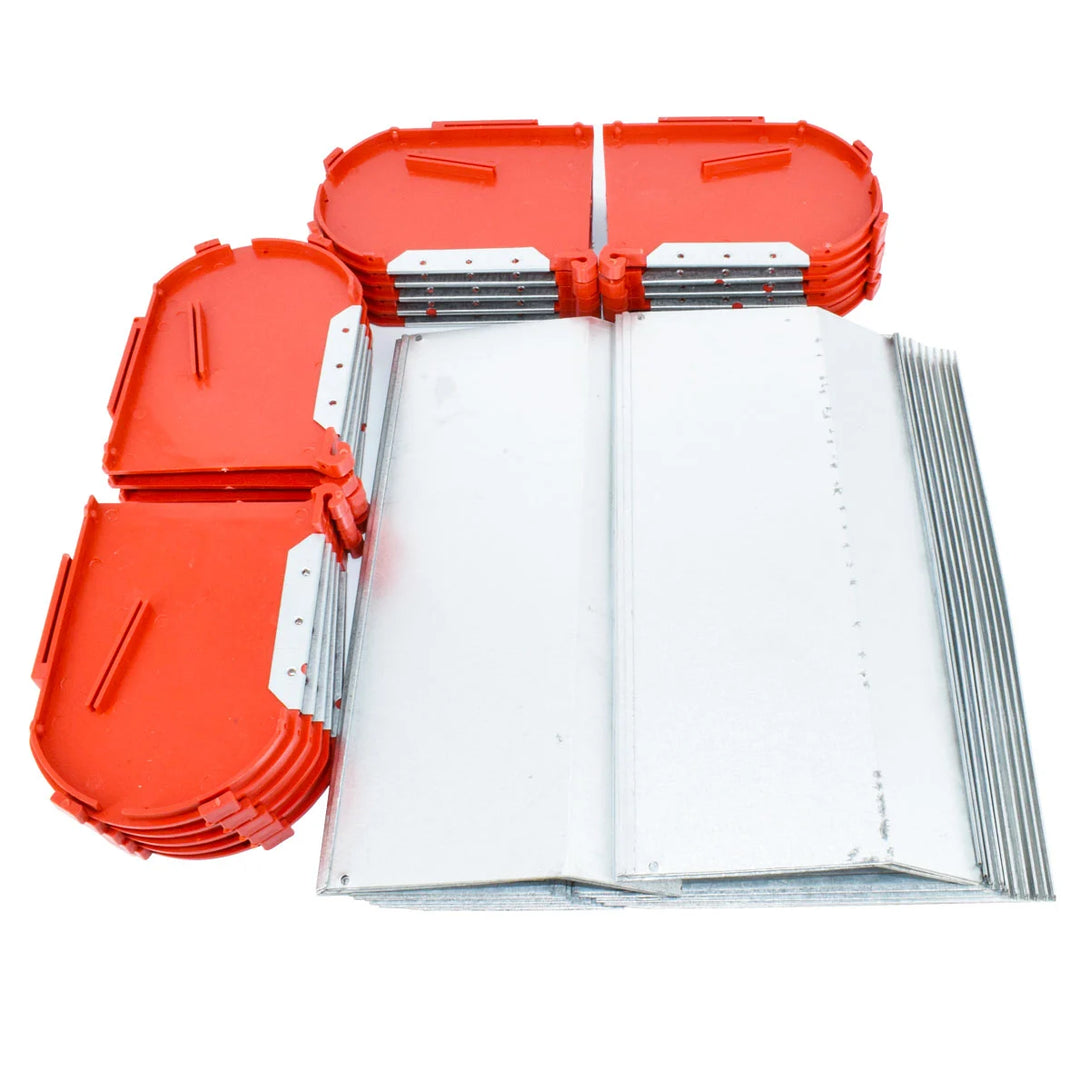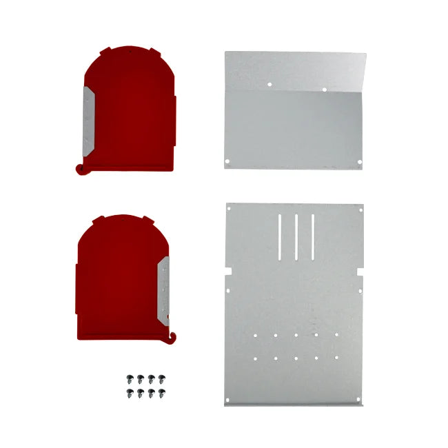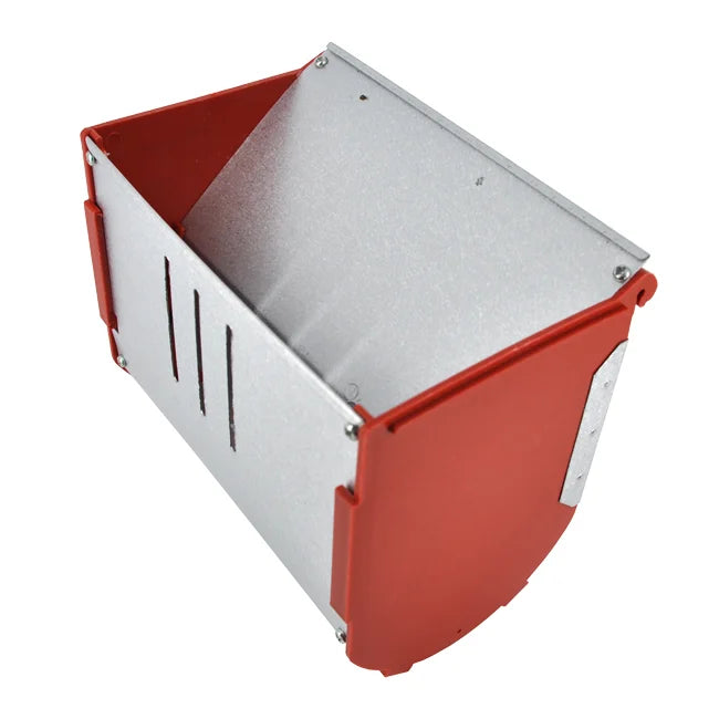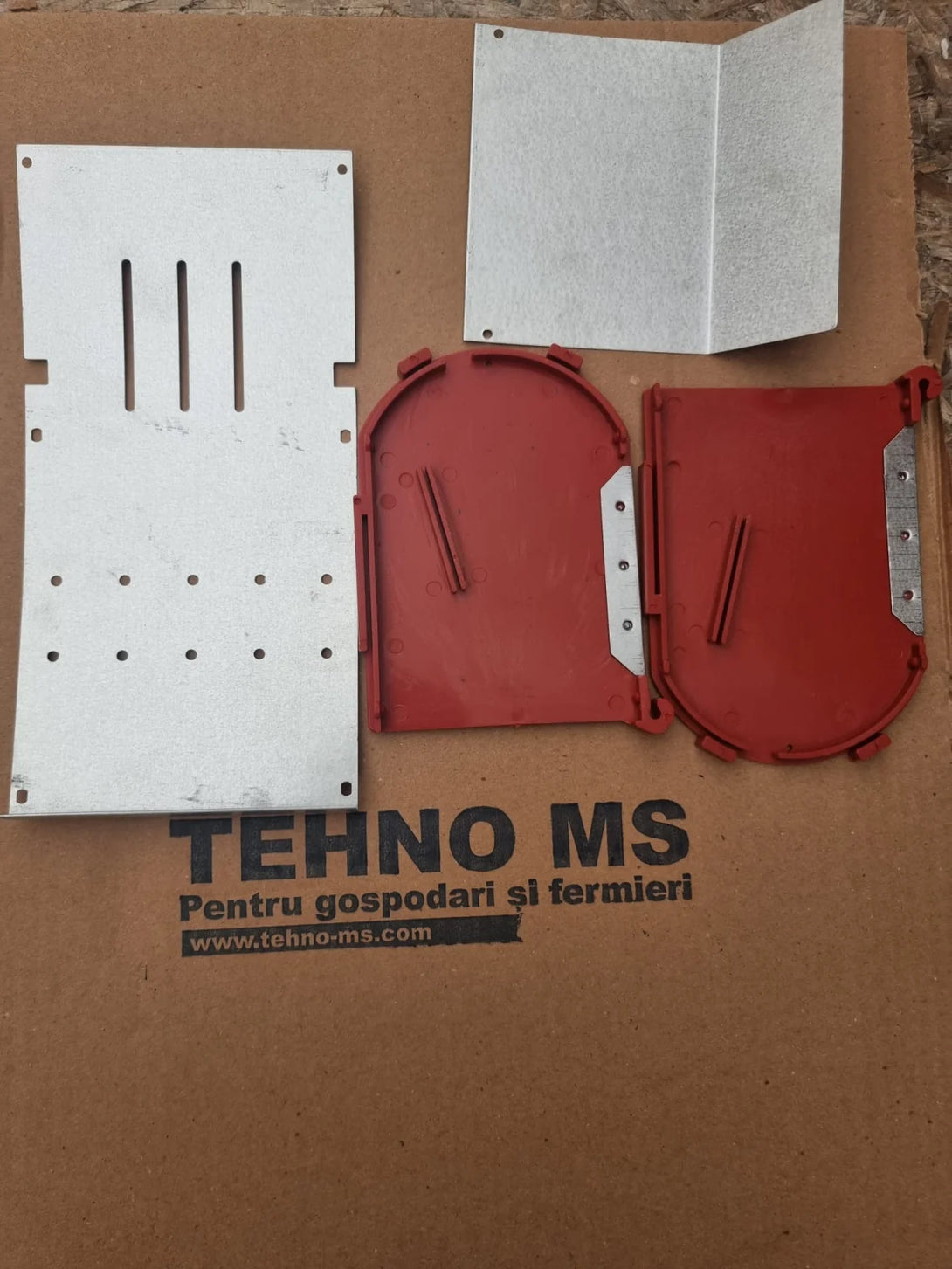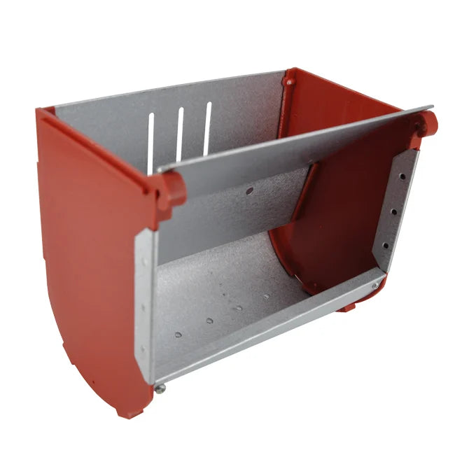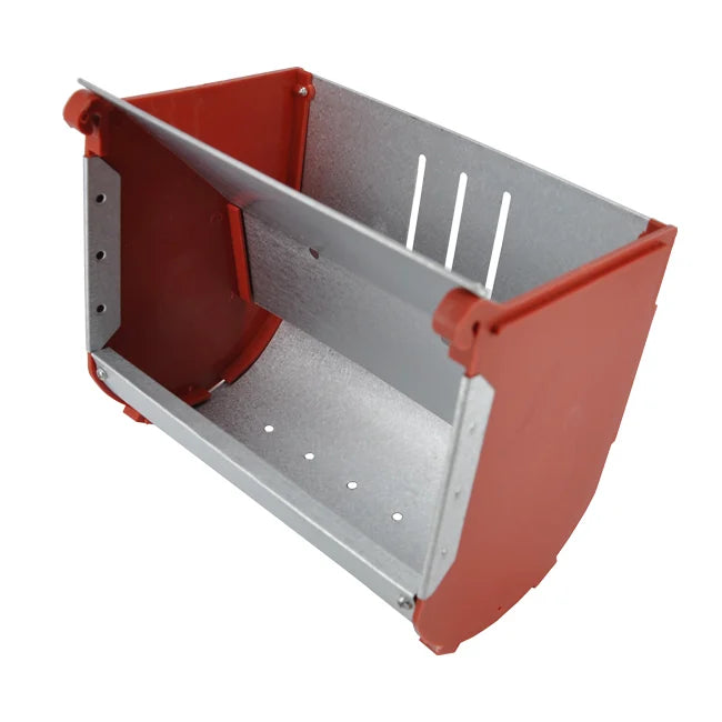 Компонентите на хранилките са: 2 части от поцинкована ламарина, 8 винта и 2 пластмасови страни с ръбове от поцинкована ламарина.