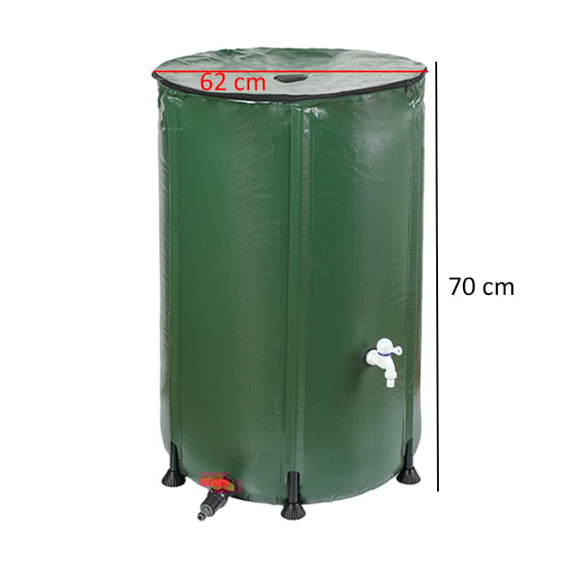 Сгъваемият варел за дъждовна вода се използва за задържане и съхранение на дъждовна вода, която по-късно може да се използва за поливане на градини, миене на превозни средства, почистване на примеси и др.