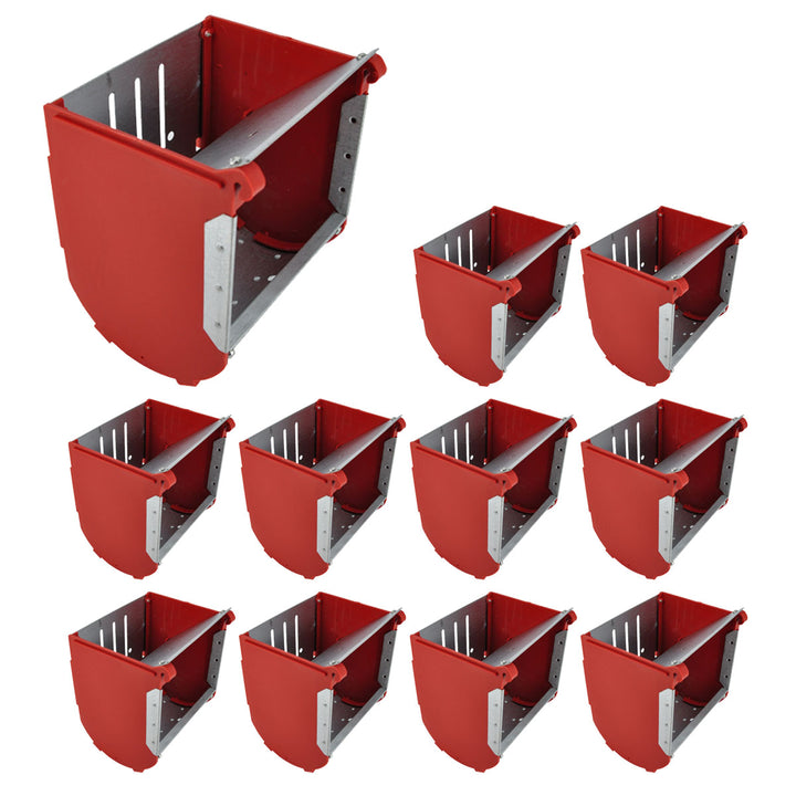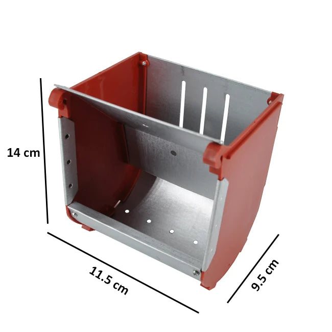 Хранилка за зайци 12 см комплект 10 броя Хранилката за зайци е направена предимно от поцинкована ламарина, а двете страни са от твърда пластмаса. Тя има едно отделение и се монтира към външната страна на клетката, като по този начин се улеснява захранването на резервоара. Също така елиминира отпадъците от фураж и не позволява на животните да я преобърнат. Компонентите...