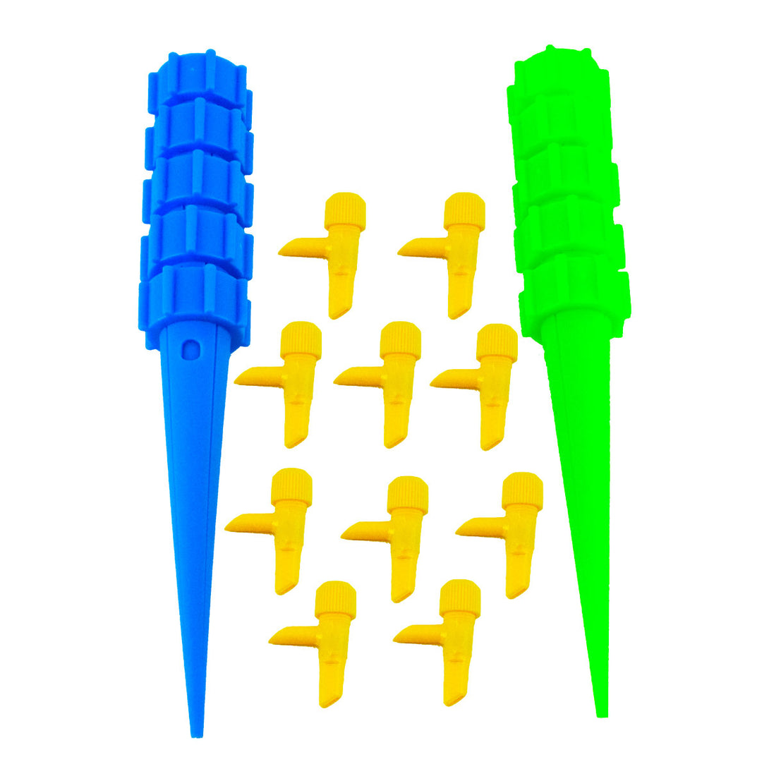 Регулируема система за капково напояване Комплект 10 броя Автоматичен капкообразувател за поливане на растения в саксия, с възможност за регулиране на скоростта на капкообразуване. Много полезен по време на почивка, когато сте далеч от дома за 2-3 седмици. Използва се много лесно: напълнете PET бутилка с вода, завийте я към оборудването, забийте устройството в земята, като внимавате да подпрете бутилката...