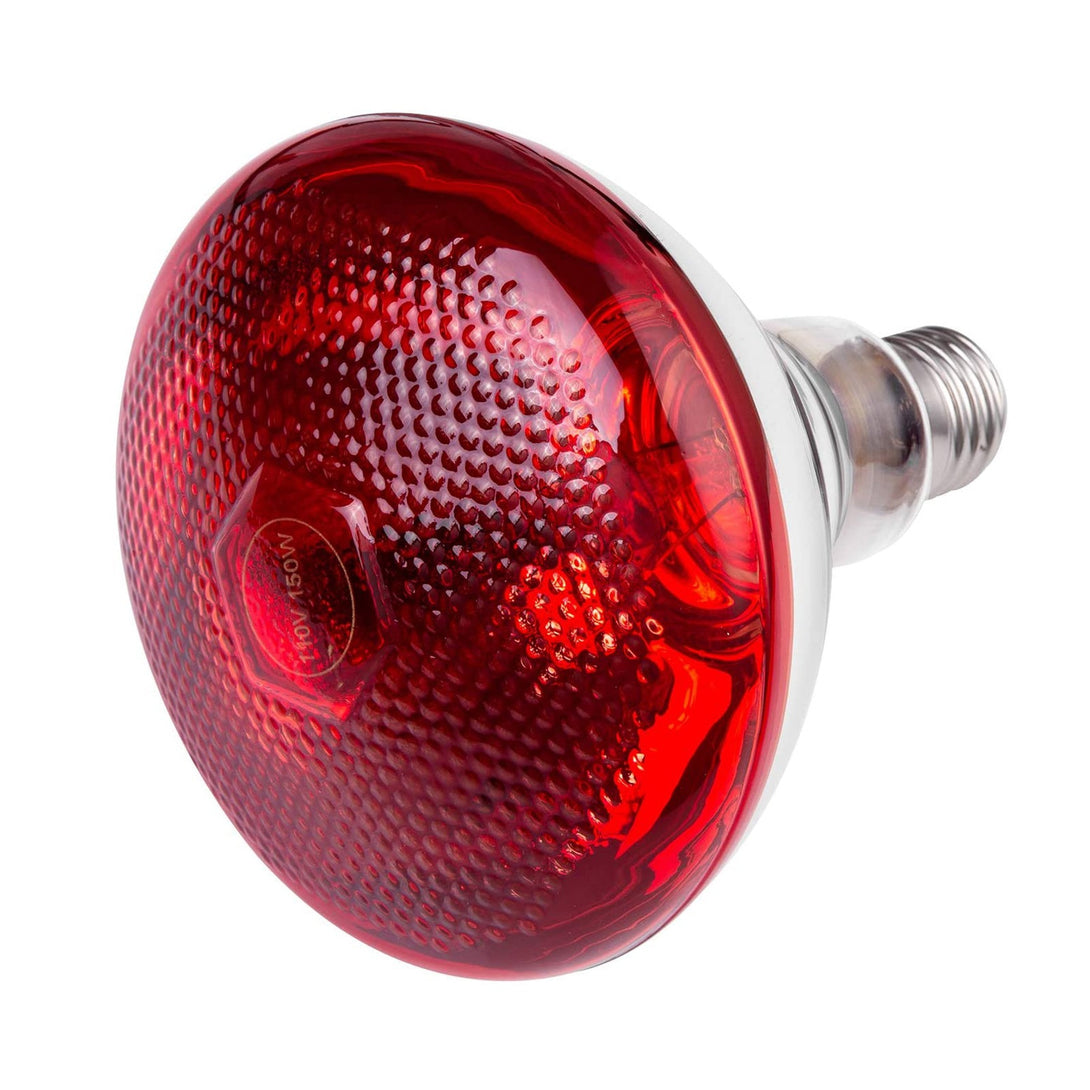 Инфрачервена крушка, дебело стъкло – 100 Вт Източник на моментална лъчива топлина, който може да се контролира прецизно, идеален за отглеждане на животните, насърчаване на по-бърз растеж и постигане на оптимални резултати. По-ниско ниво на смъртност, след разделянето на пилетата с майката. 90% от енергията се предава чрез инфрачервена топлина. РАЗМЕРИ НА КОЛЕТА: Височина 15 см Дължина 12 см Ширина...
