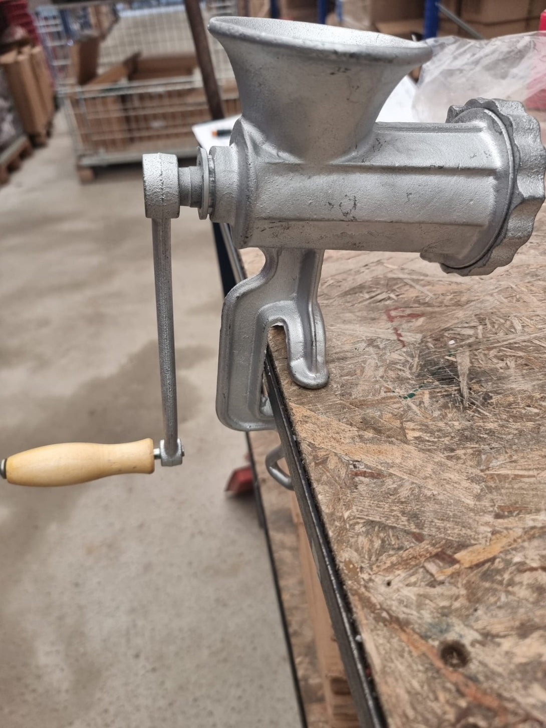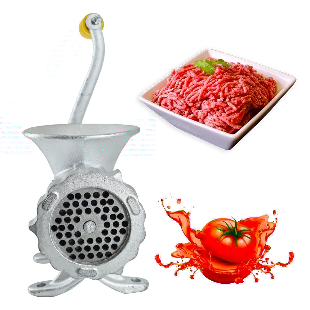 Месомелачката се предлага с необходимите аксесоари (нож, решетка, чугунена дръжка).