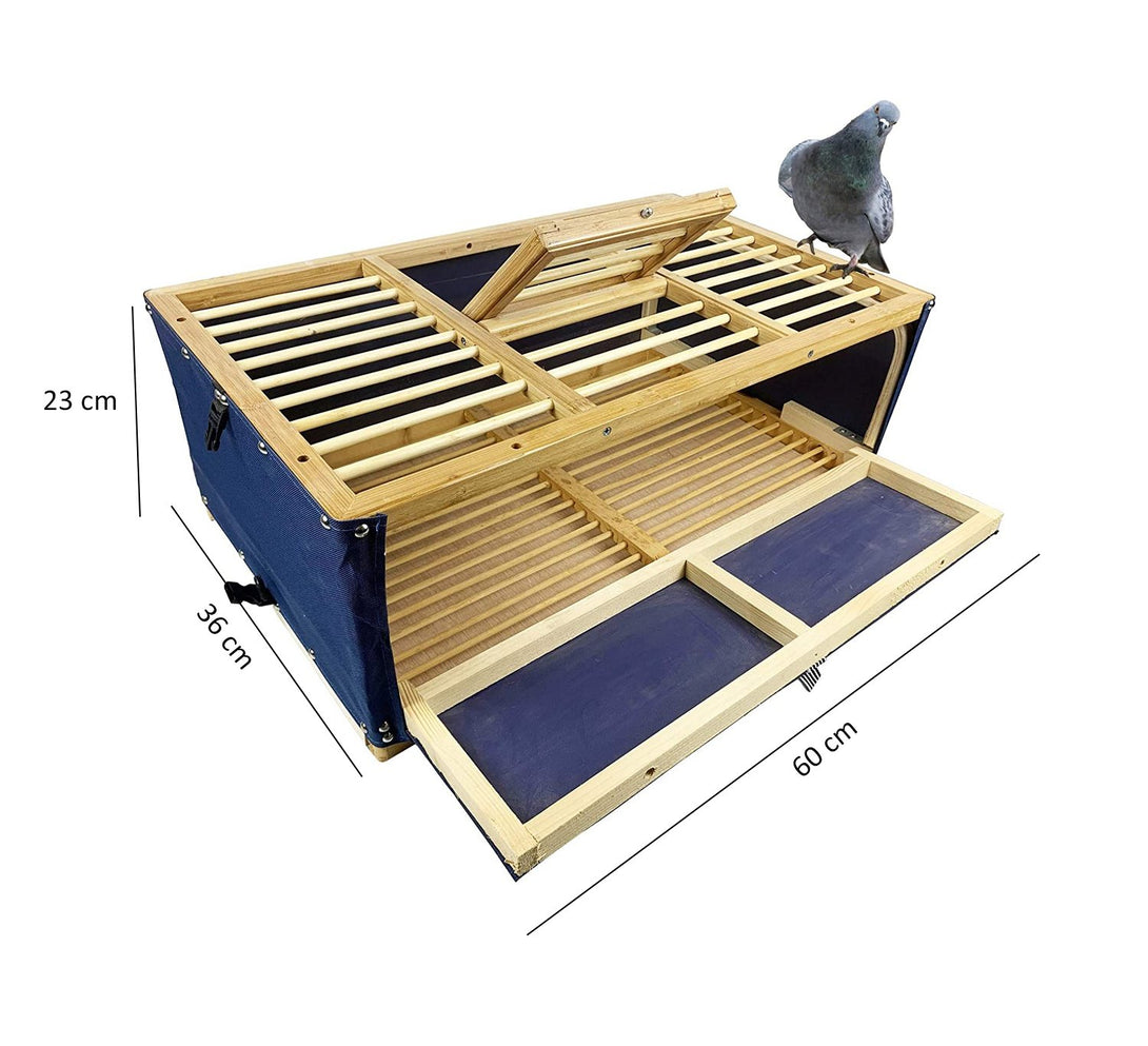 Дървена транспортна кутия за гълъби 60*32*23см Сгъваема, лесна за транспортиране и съхранение, не заема много място. Подвижните тави улесняват почистването и осигуряват хигиена на клетката. Дървеният материал поддържа клетката по-топла. ТЕХНИЧЕСКИ ДАННИ Материал Дърво Цвят син РАЗМЕРИ НА ПРОДУКТА Височина 23 см Дължина 60 см Ширина 32 см Тегло 2 кг