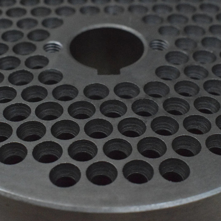 Матрица 150/6 мм Ø Това е част от гранулатора, която се използва за подаване на суровина под формата на гранули, които се използват във фуражите за животни. Матриците са стоманени и върху тях се прилага топлинна обработка. Съответно и качествената им работа. Продуктът е с най-високо качество, изработен от термозакален и устойчив материал. Може да се поръча отделно или като...