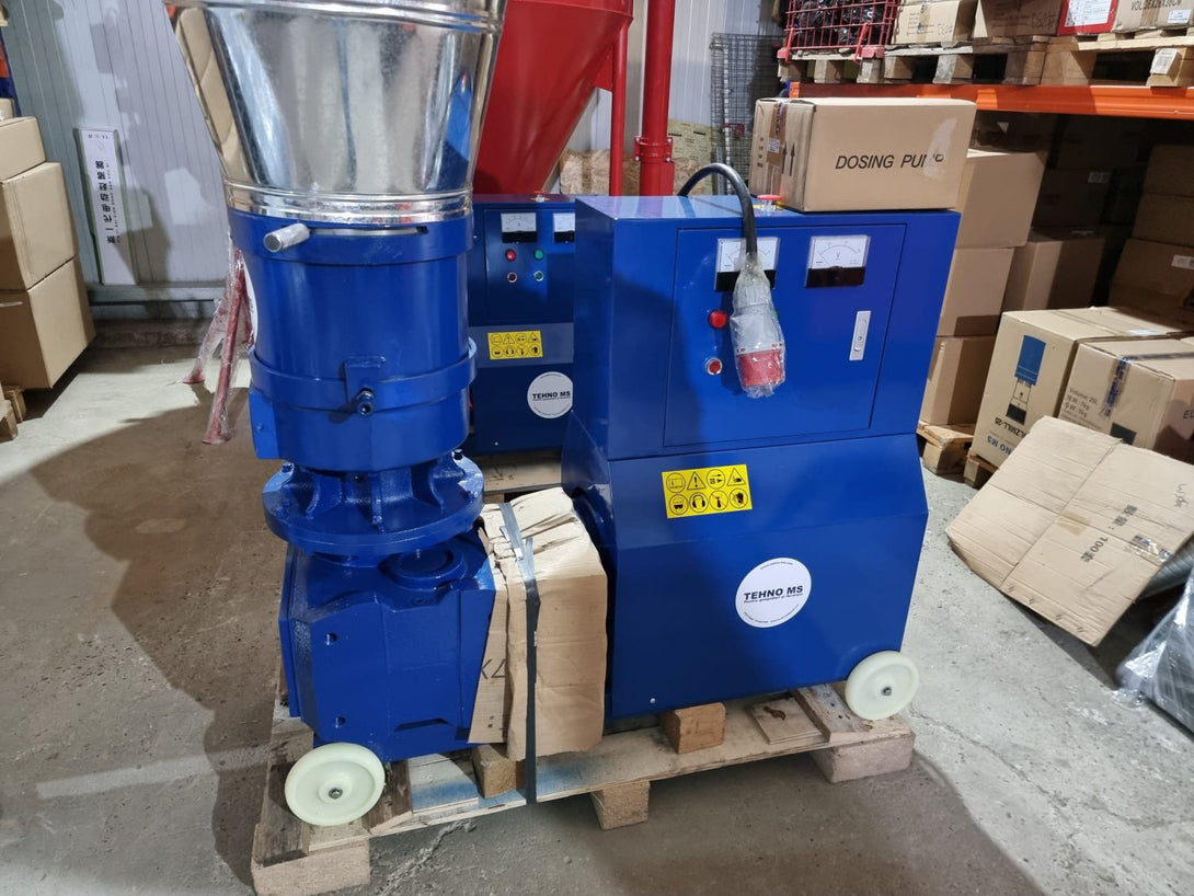 Машина за пелети 150 кг/час PROFI MKL-229 - се използва за преработка на биомаса (дървени стърготини, слама, кочани, тръстика, животински отпадъци и др.) в малки гранули 6 мм, 8 мм - задвижва се от трифазен електродвигател от 11 кВт -предаването на мощност се извършва чрез редуктора -работното оборудване се състои от матрица и ролка, с цел на пресоване на суровината...