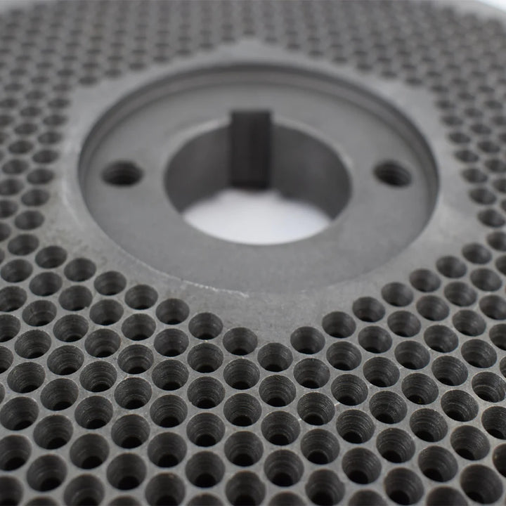 Матрица 200/4 мм Ø Това е част от гранулатора, която се използва за подаване на суровина под формата на гранули, които се използват във фуражите за животни. Матриците са стоманени и върху тях се прилага топлинна обработка. Съответно и качествената им работа. Продуктът е с най-високо качество, изработен от термозакален и устойчив материал. Може да се поръча отделно или като...