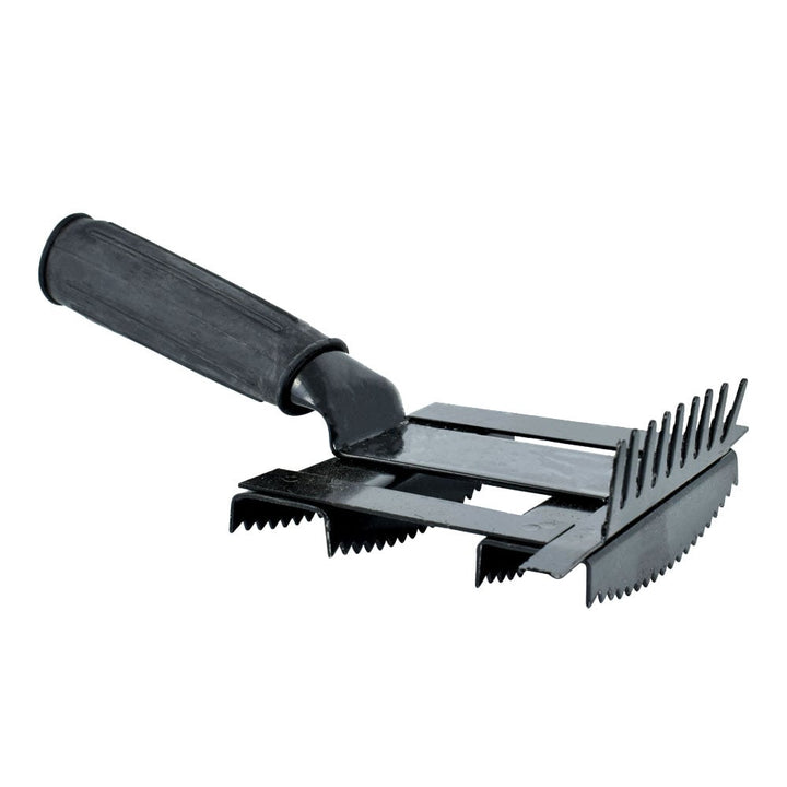 Чесалото е изработено от поцинкован метал, снабдено с гребен за грива и дървена дръжка.