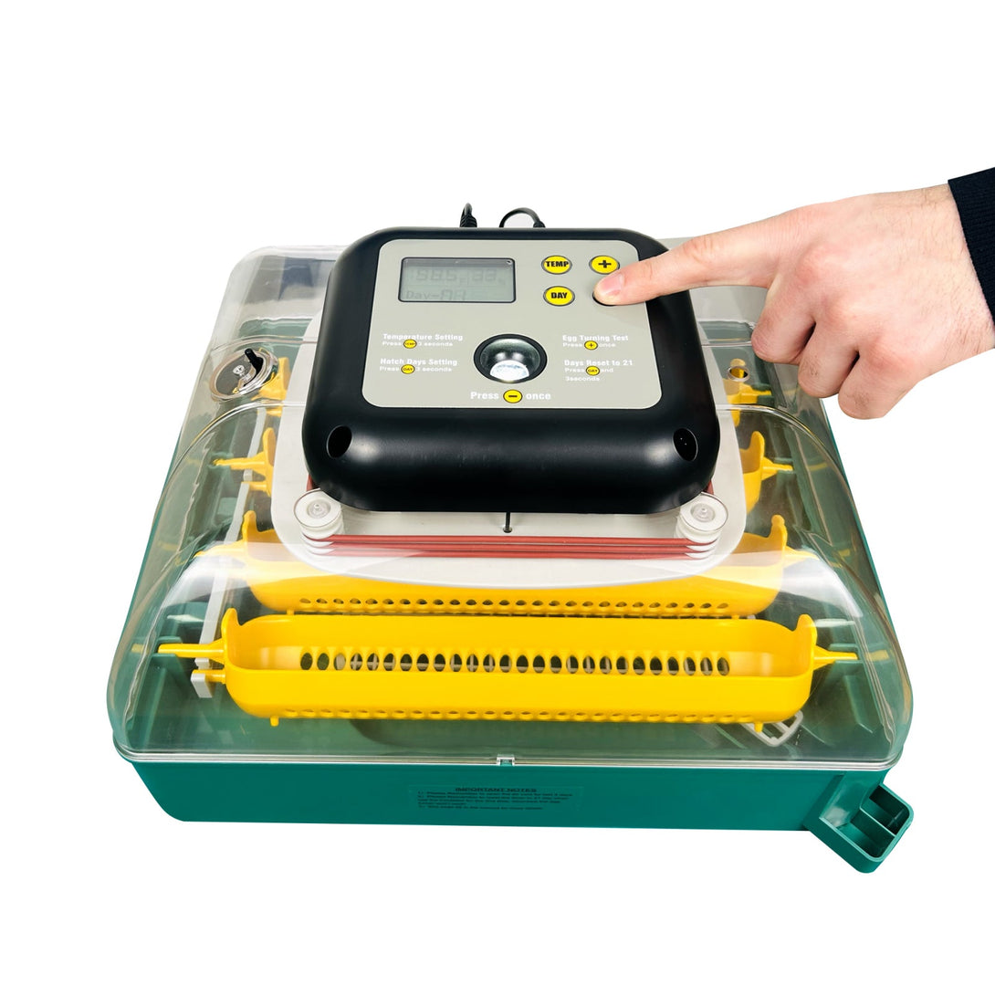Капакът на инкубатора е оборудван с контролер (вграден в капака), който помага на потребителя да направи всички необходими настройки за люпене на яйцата, а долната му част е прозрачна, което позволява да се следи състоянието на яйцата, без да се налага да се отваря капакът на инкубатора.