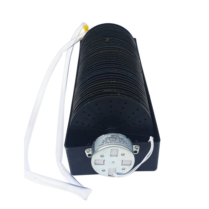 Дискова система за поддържане на влажност MS-180/MS-240/MS-300 Продуктът е изработен от висококачествени материали, което гарантира неговата дълготрайност. Това е компонентът, който осигурява влажността на въздуха в инкубатора. Уредът се състои от: тава, поплавък, захранващ маркуч, 12V мотор и дискове. Продуктът не е съвместим със следните модели на инкубатори: MS-180, MS-240 и MS-300, за да се осигури оптимална влажност за излюпването...