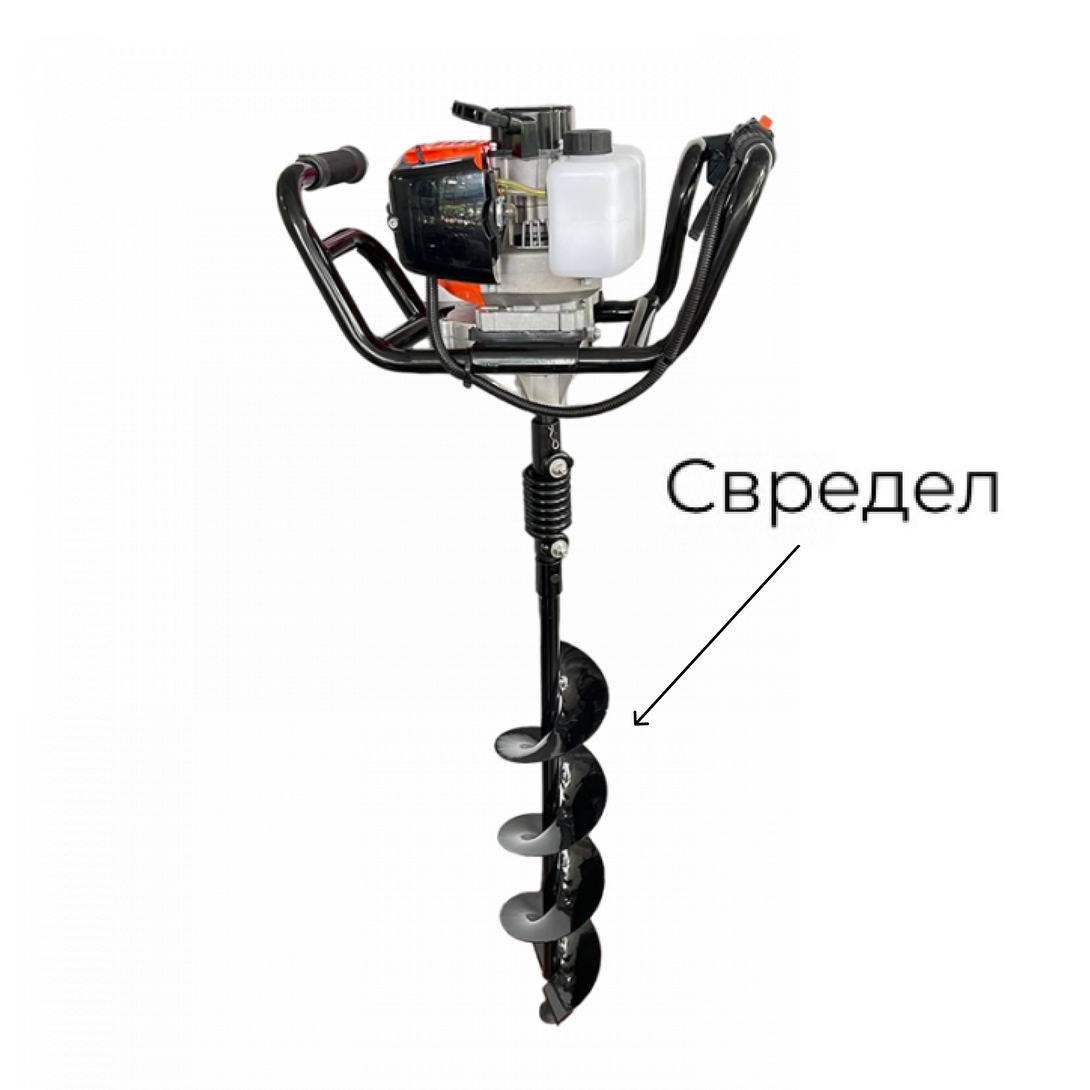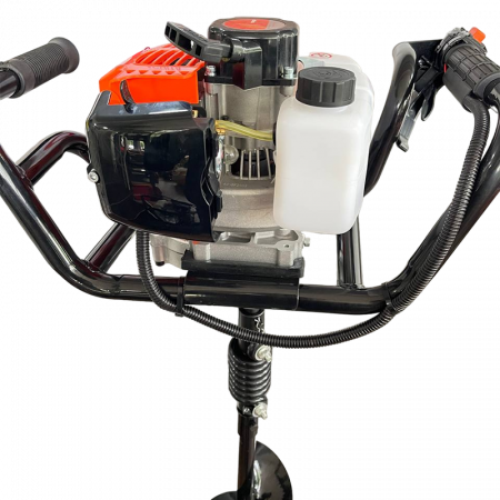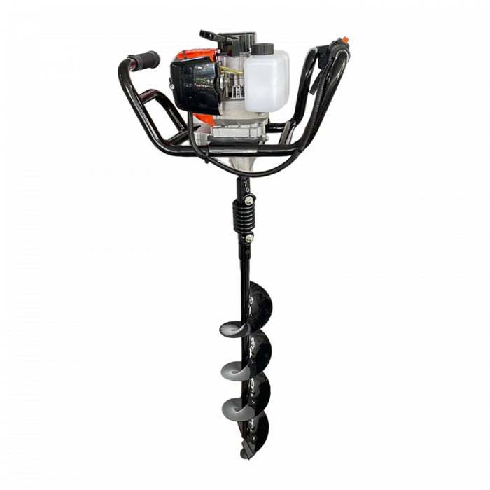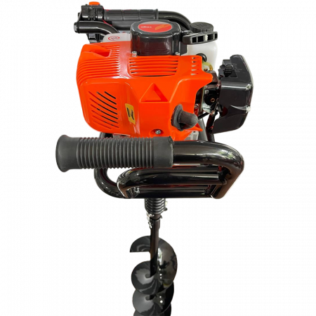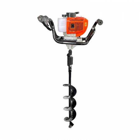 За засаждане на млади дръвчета можете да използвате и по-малки диаметри от 100 мм (не са включени в комплекта). Той може лесно да се пренася и управлява от един човек с помощта на гидона с две дървета. Пробиването на вертикален отвор в земята е лесно, като се регулира ускорението и усилието в зависимост от твърдостта на земята и диаметъра на свредлото.