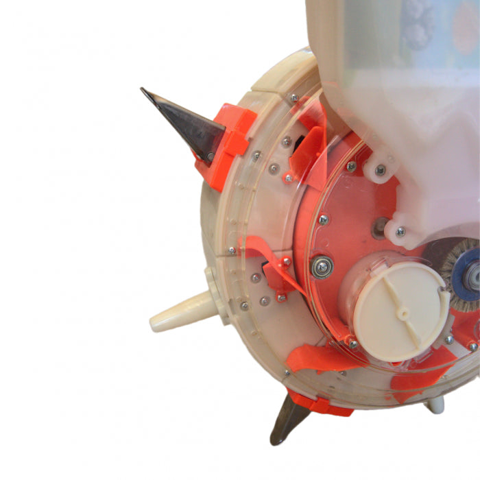 Притежава прозрачен контейнер за семената, финишът на семената се следи предварително, като по този начин се избягват незасегнати площи.