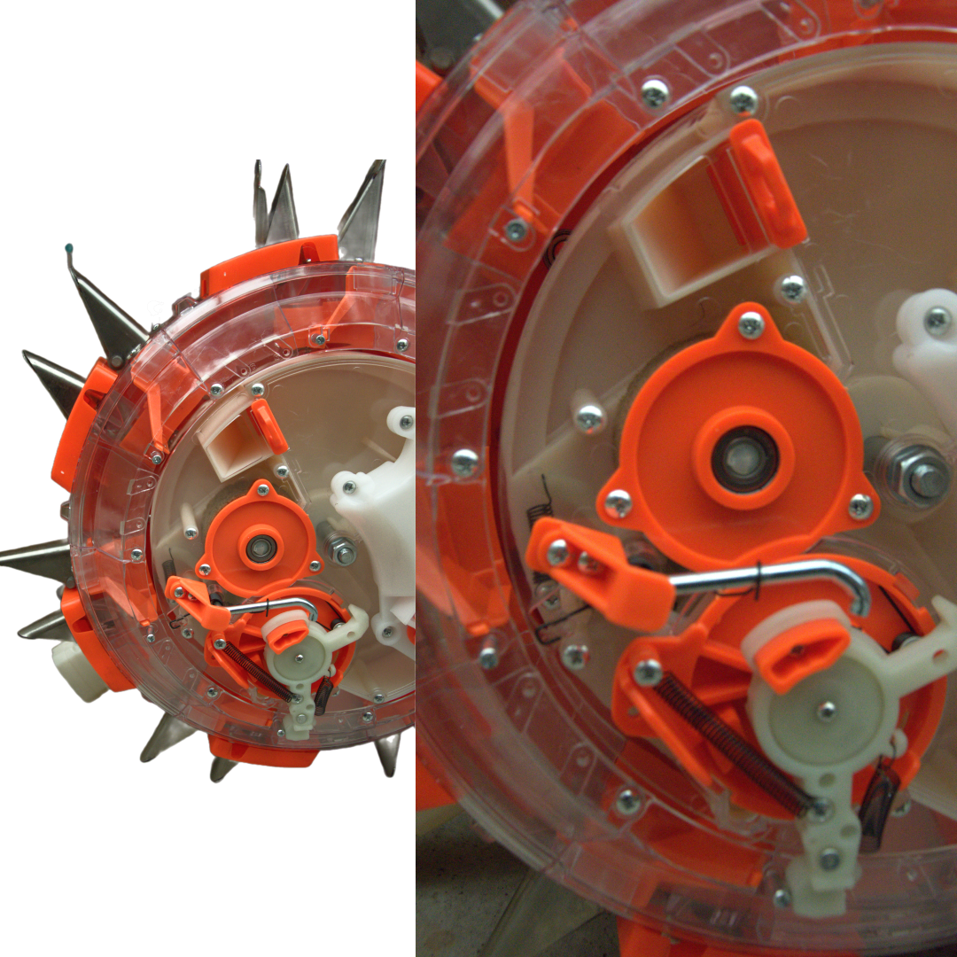 Притежава прозрачен контейнер за семената, завършването на семената се следи предварително, като по този начин се избягват незасегнати площи.