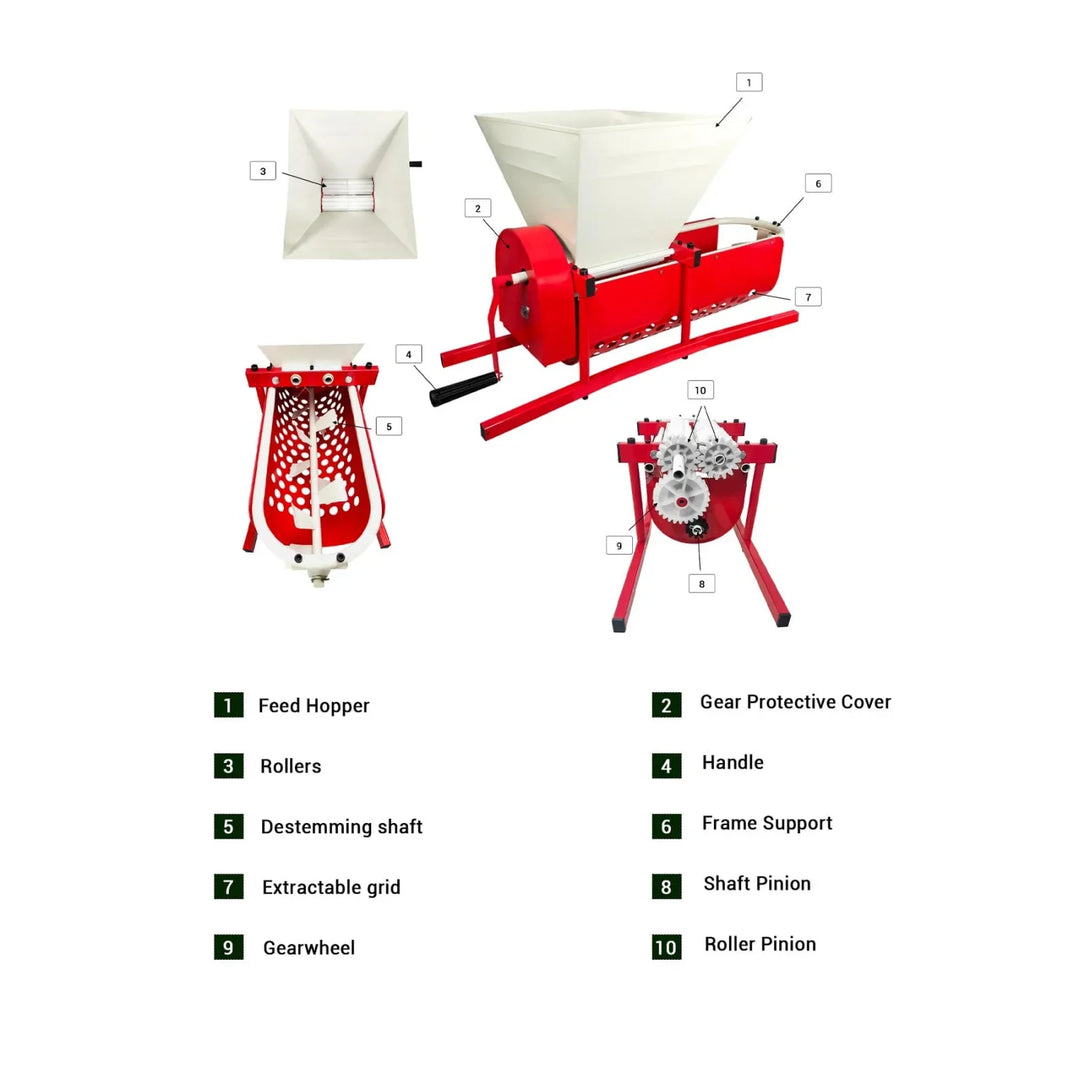 Първоначалната технологична операция при първичната преработка на гроздето е смачкването на плодовете и отделянето на чепките. Тази трошачка е незаменима за всяко домакинство.