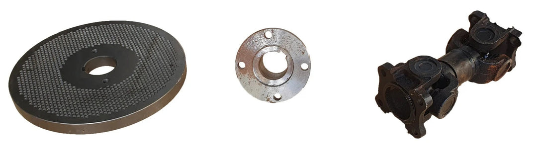 Този продукт е оборудван с: захранващ резервоар, тяло на гранулаторния механизъм, транспортни колела, шаси на гранулатора, защита на моторизирания съединител, притискаща ролка, матрица, тяло на редуктора и корито за изтичане на гранули.